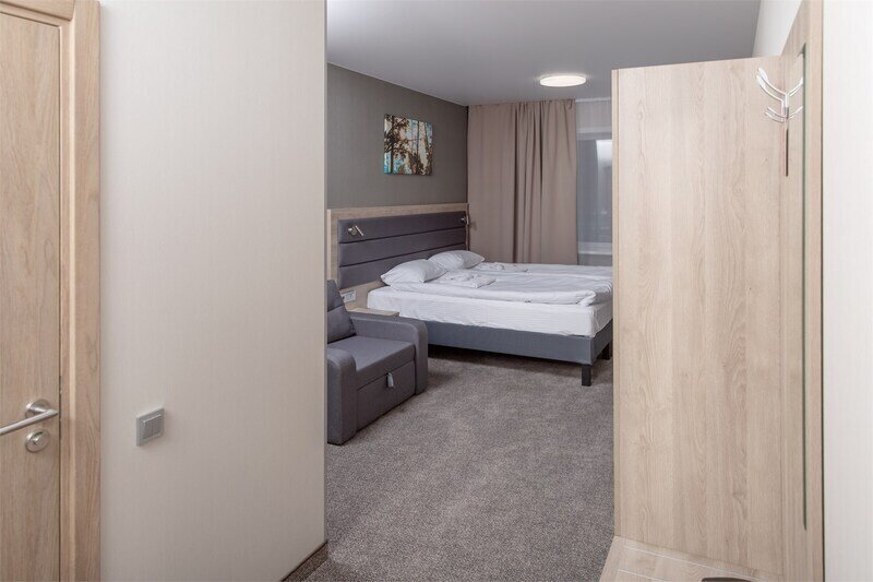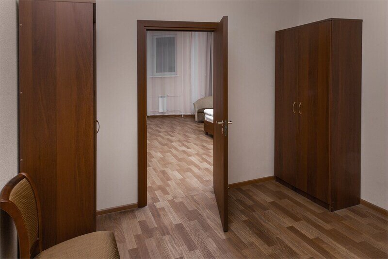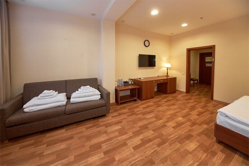 Просторный двухкомнатный номер отлично подойдет для комфортного размещения семьи с детьми и длительного проживания.