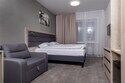 Просторный однокомнатный номер отлично подойдет для комфортного размещения семьи с детьми и длительного проживания.