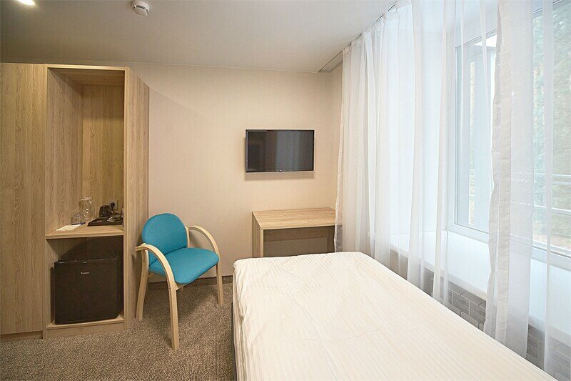 Уютные одноместные номера «Стандарт» выполнены в едином стиле, в каждом номере есть все необходимое для комфортного отдыха. В номере — уютная спальня с односпальной кроватью и письменным столом, шкаф для одежды, санузел с душевой зоной. Из окна уютного номера открывается прекрасный вид на лес.