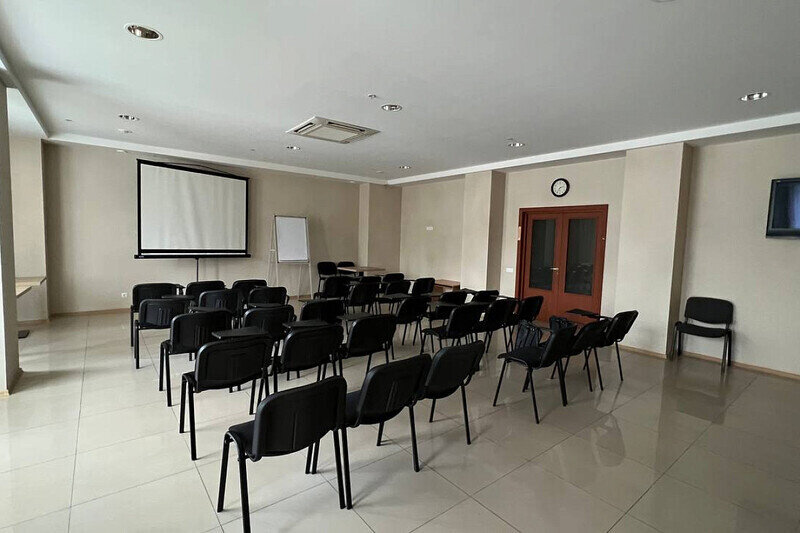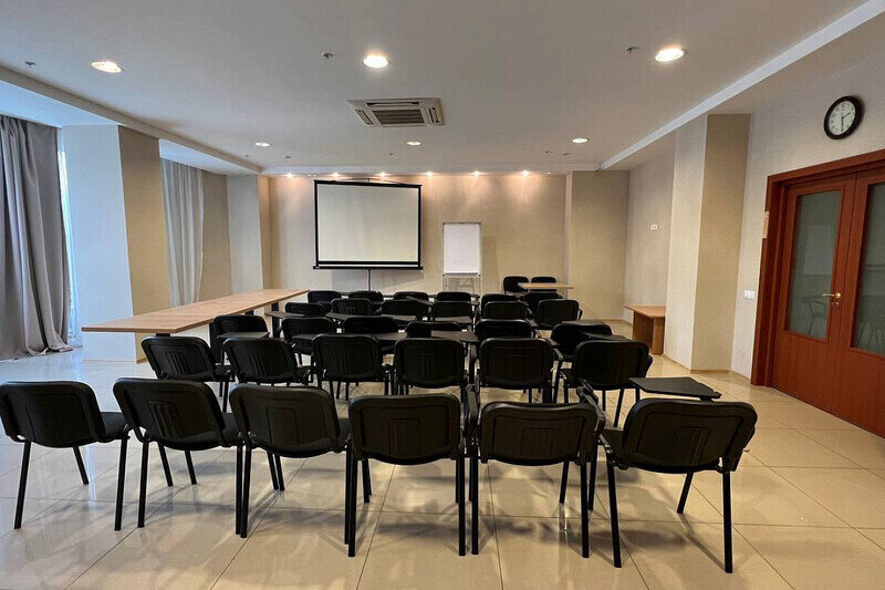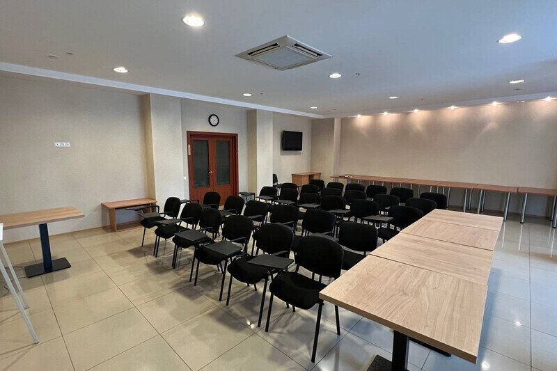 Конференц-зал идеально подходит для проведения семинаров, конференций, деловых встреч, презентаций, мастер-классов, бизнес встреч. Возможны различные варианты расстановки мебели и рассадки гостей.