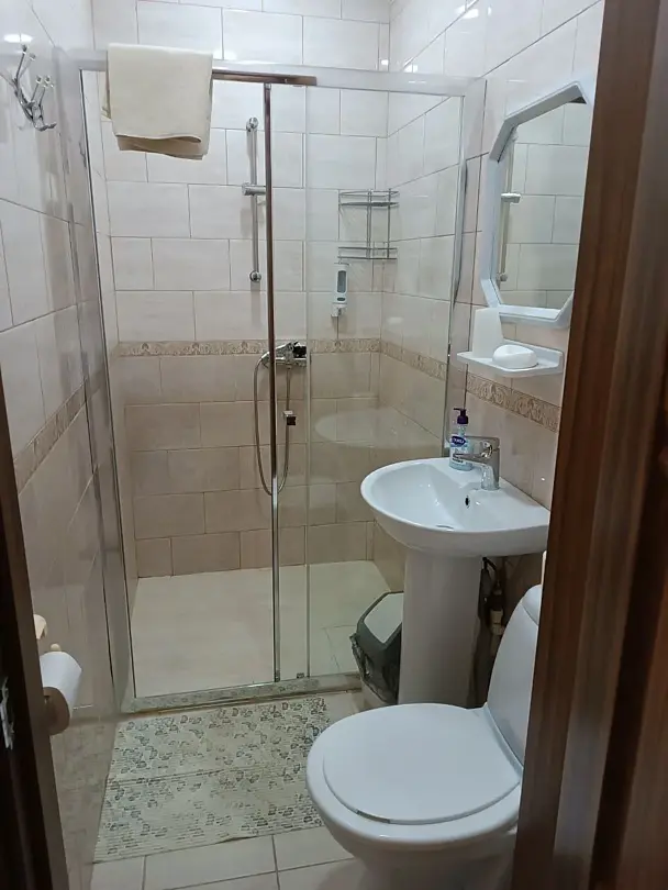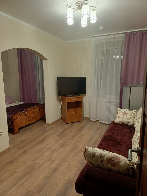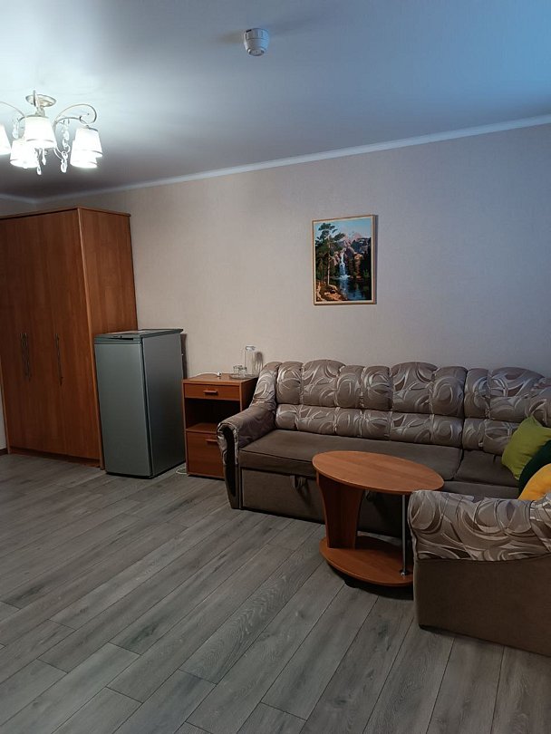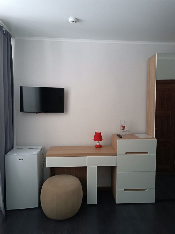 Для удобства гостей есть журнальный столик, телевизор, холодильник персональная ванная комната с ванной и туалетными принадлежностями.