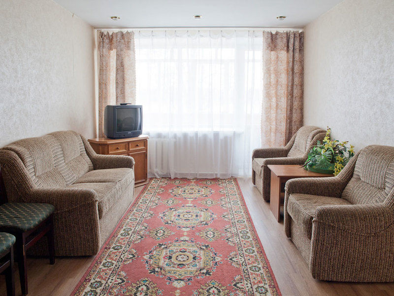 2-х местные двухкомнатные номера, расположенные на 2 этаже со всеми удобствами: гостиная с мягкой мебелью, спальня с двуспальной кроватью, телевизор, холодильник, набор посуды, ковер (ковровое покрытие), электрический чайник, санузел с душем.