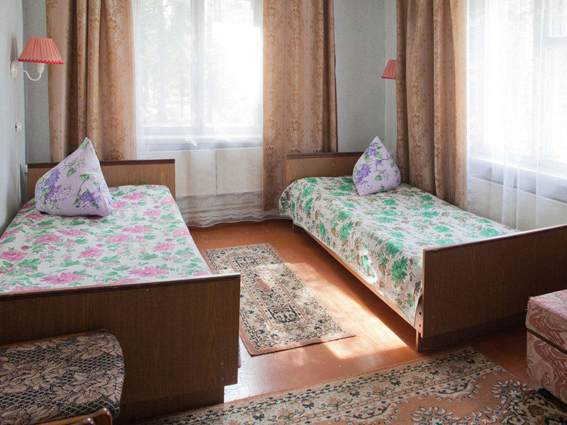 1-но, 2-х, 3-х местные однокомнатные номера, расположенные на 1-3 этажах с удобствами: телевизор, холодильник, ковровая дорожка, санузел с душем. На втором этаже имеется 3-х местный номер с двухъярусной кроватью.