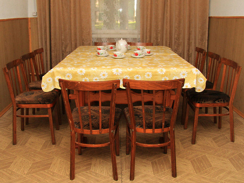 Рассчитан на размещение до 20-и человек, которые будут проживать в 9-ти спальных комнатах: шесть номеров на двух человек, два номера на трех и один номер категории "Люкс" на двоих. В Коттедже: банкетный зал, сауна, гостиная с мягкой мебелью и бильярдом, санузел с душем, телевизор, холодильник, эл. чайник, микроволновая печь.