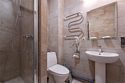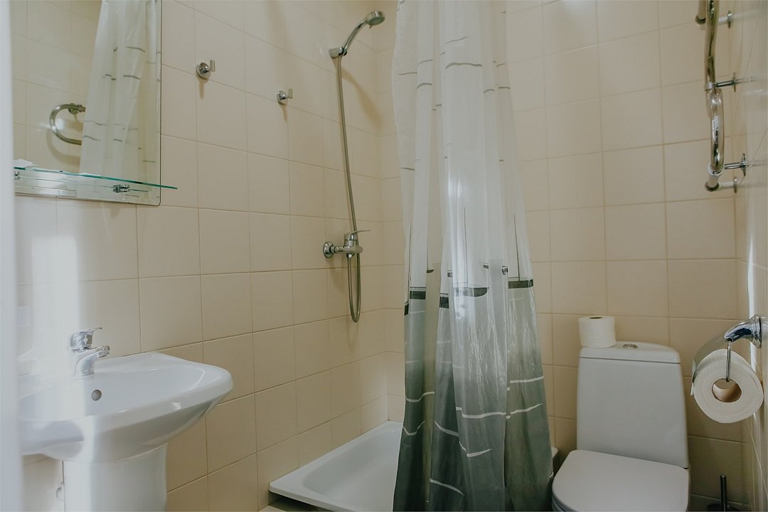 Ванная комната оснащена душевой кабиной, раковиной, WC, феном. Оформление номера располагает к длительному отдыху вдали от шума и суеты. Возможно двухместное размещение.