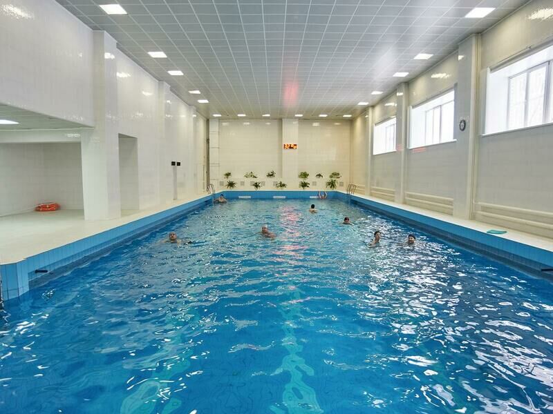 Тип бассейна: крытый бассейнВода в бассейне: подогреваемый бассейнРазмеры: 9 x 25 мГлубина (диапазон): от 200 до 450 смВ бассейне поддерживается комфортная температура и используется профессиональная, многоуровневая система очистки и подготовки воды. Посещение бассейна входит в стоимость оздоровительной путевки и назначается (если нет противопоказаний) по путевке общего профиля и вертеброневрология.
