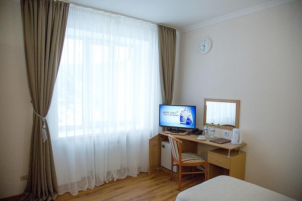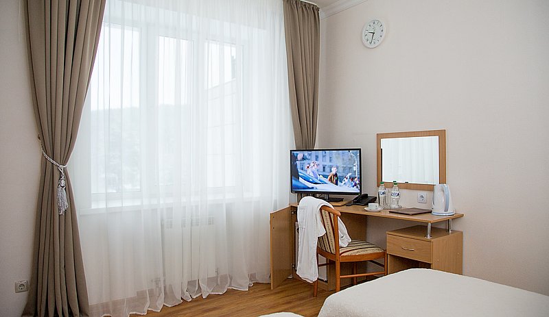 Камерный формат. В санатории всего 28 номеров, одновременно у нас могут разместиться не больше 60 человек. Уютная атмосфера идеально подходит для отдыха и лечения в Белокурихе. Мы выбрали концепцию отдых по-домашнему. Мини-формат лучше всего подходит для ее реализации.