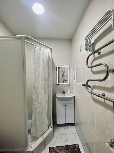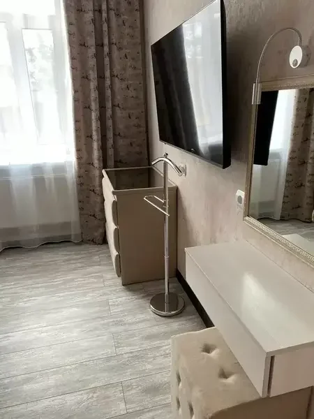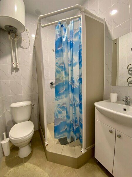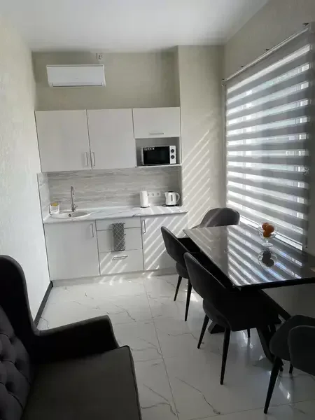 2-спальная кровать, софа, ТВ, кухонный гарнитур с посудой, холодильник, чайник, раковина, кондиционер. с/у -душ