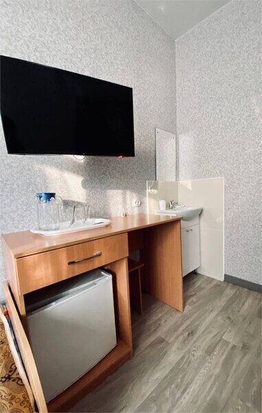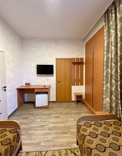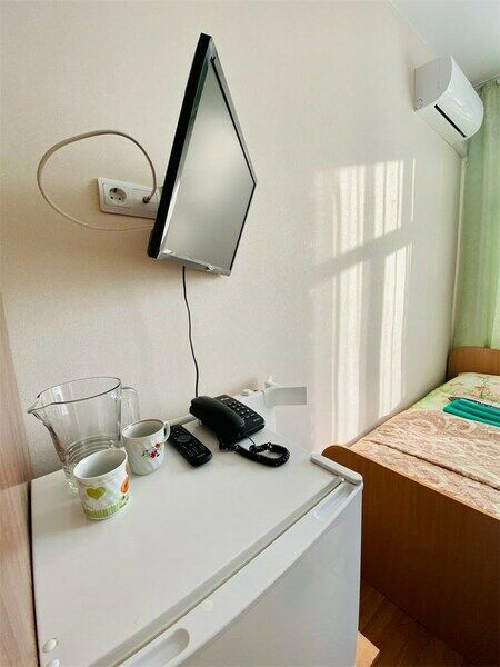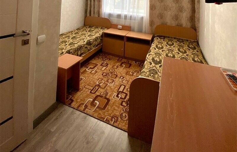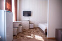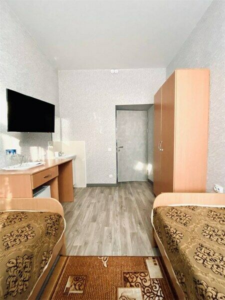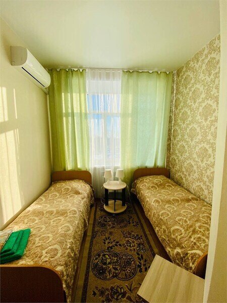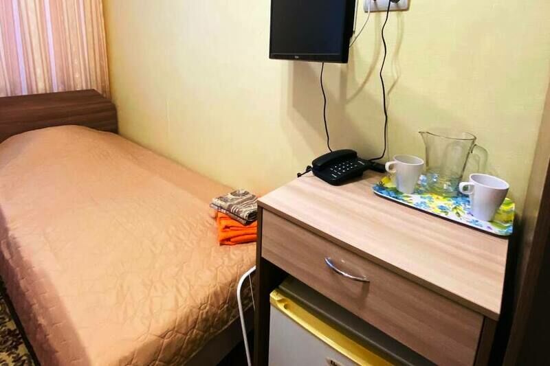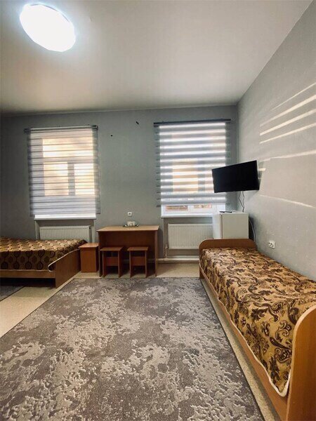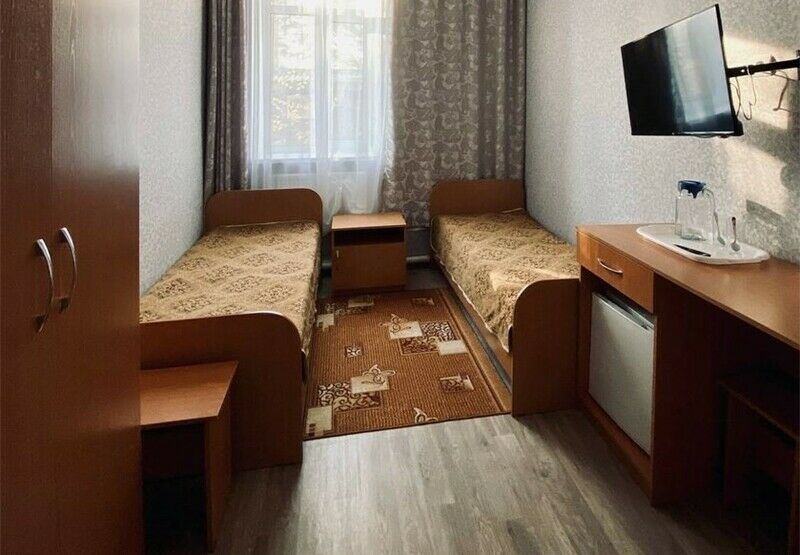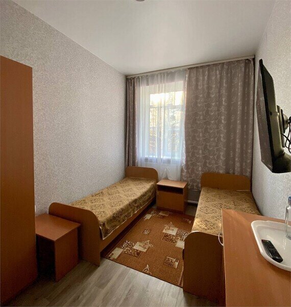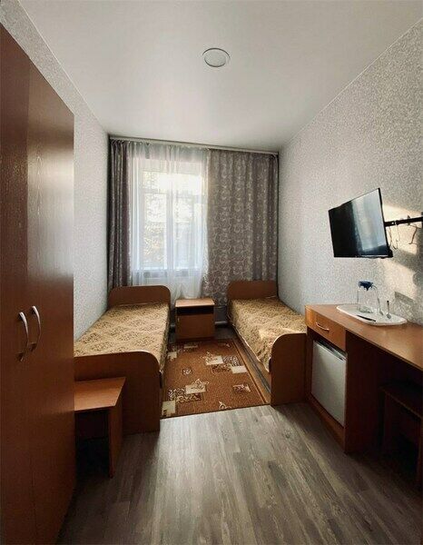 2 односпальные кровати, шкаф, ТВ, мини-холодильник, раковина. Душ и с/у на этаже, общие.