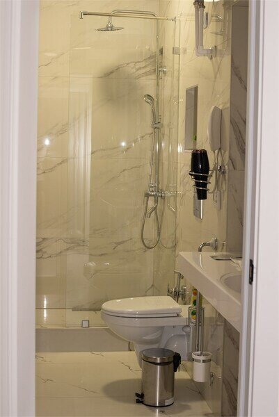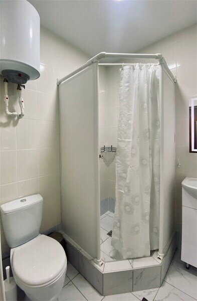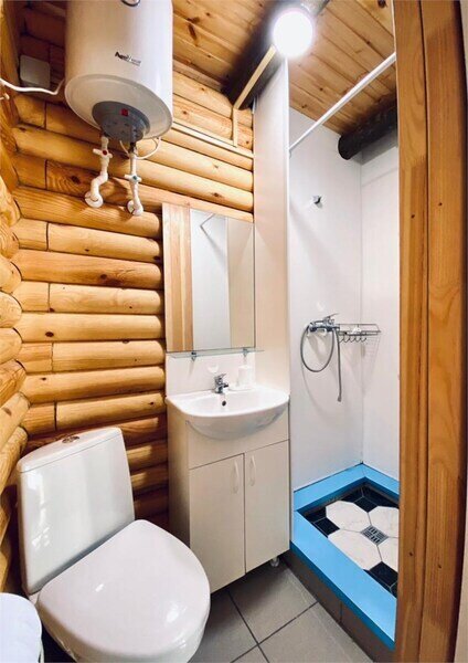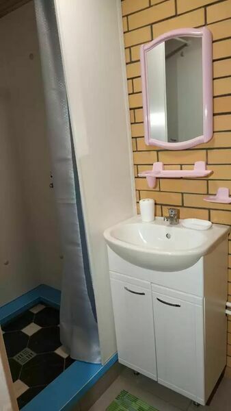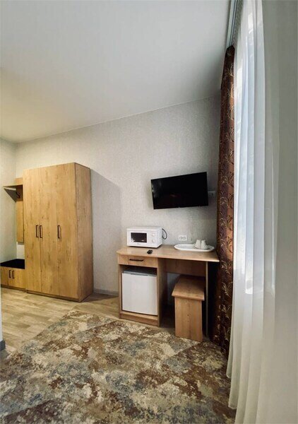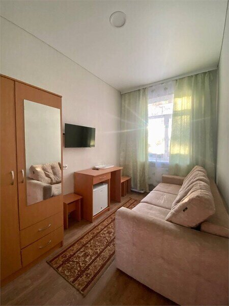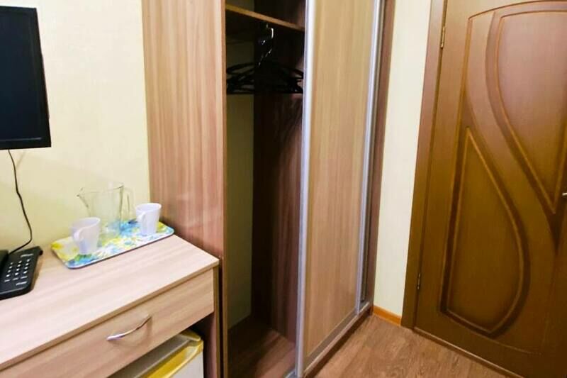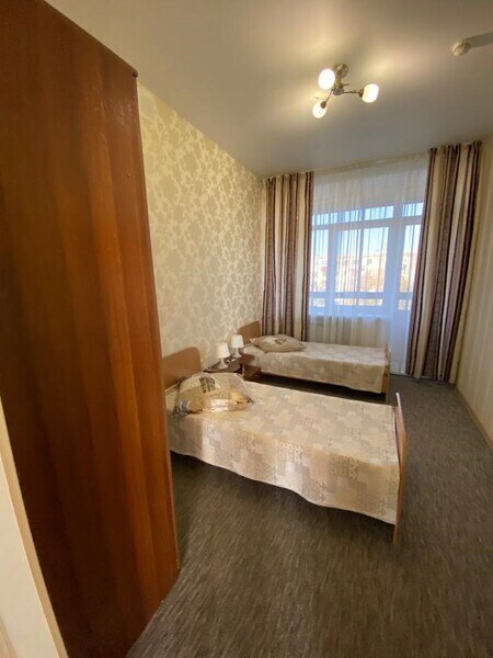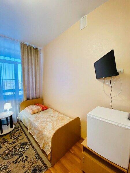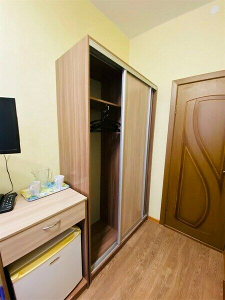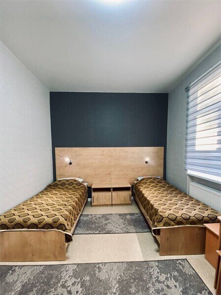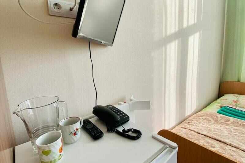 2 односпальные кровати, шкаф, ТВ, мини-холодильник, раковина. Душ и с/у на этаже, общие.