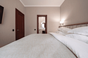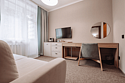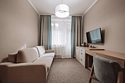 современный и стильный номер класса люкс с отдельной спальней, гостиной и большим балконом. В нем комфортно размещаются 2 человека на широкой 2-спальной кровати, возможно размещение еще 2 гостей на раскладном диване. Корпус: «Родник». Вид из окна: на городУслуги и удобства