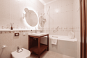в номере комфортно размещаются 2 человека на широкой 2-спальной кровати, возможно размещение еще 2 гостей на раскладном диване. Для гостей с маленькими детьми возможно размещение в номере детской кроватки или дополнительного мобильного спального места. Корпус: «Здравница». Вид из окна: комплекс летних бассейнов / на городУслуги и удобства