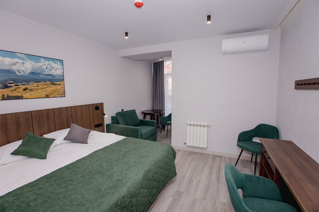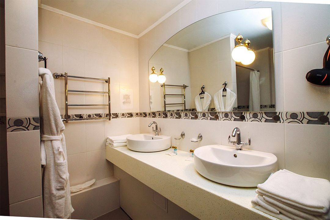 Номер, состоящий из спальни и собственной ванной комнаты, предназначен для комфортного отдыха 1-2 человек, возможно размещение ребёнка до 4 лет без отдельного спального места.
