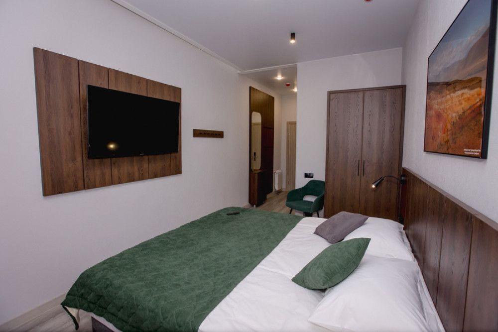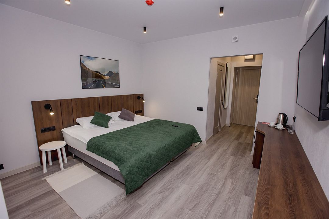 Небольшой уютный номер с двуспальной кроватью для комфортного размещения 1 гостя.