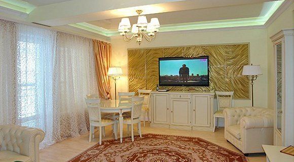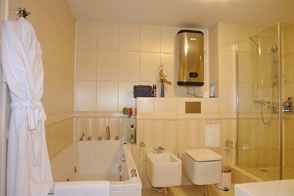 61-66 кв.м, 2-спальная кровать, диван, стол, стулья, тумбочки, зеркало, ТВ,Х,телефон, кондиционер, набор посуды, чайник, с/у с душем и ванной джакузи, халат, тапочки, фен, балкон, Wi-Fi бесплатно.