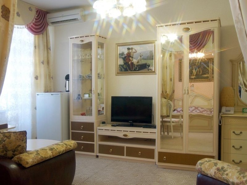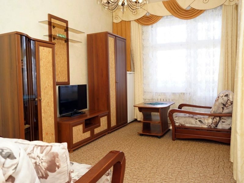 2 кровати, диван, ТВ, Х, телефон, фен, с/у, душ.