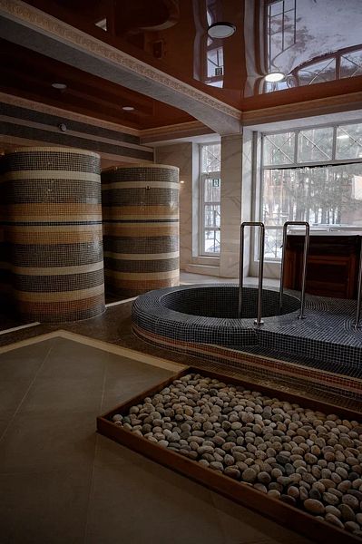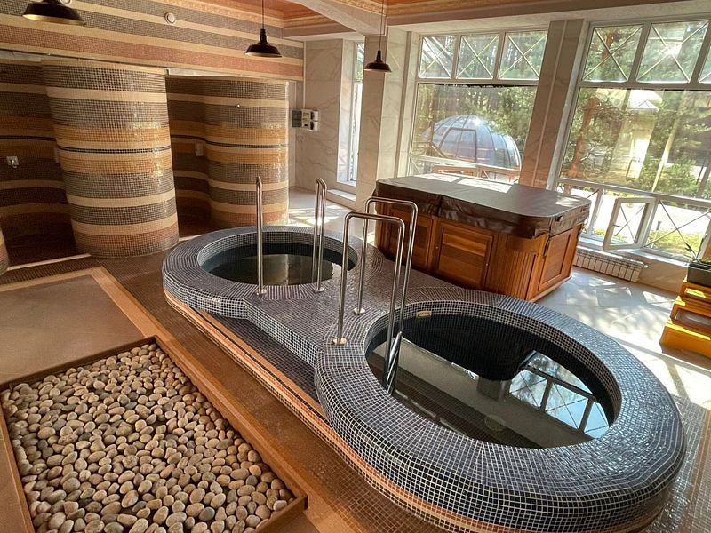 Читать полностьюБольшой и вместительный бассейн с комплексом саун: хаммам и финская, купель с холодной водой, японская баня Фурако (оплачивается отдельно).
