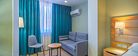 Просторный двухкомнатный номер с обновленным интерьером в мягких природных тонах. Состоит из спальни и гостиной с раскладывающимся диваном, подходит для семейного размещения. Гостиная включает зону отдыха с мягким уголком и обеденную зону. В номере: - Одна двуспальная кровать 180х200 см или две односпальные кровати 90х200 см - Раскладывающийся диван 140х190 см - Телевизор с функцией SmartTV в каждой комнате - Кондиционер в каждой комнате - Письменный стол - Шторы блэкаут - Обеденная зона - Мини-холодильник - Кондиционер - Ванная комната с душевой кабиной - Косметические принадлежности - Фен - Халаты - Тапочки - Чайная станция - Бутилированная вода - Кофемашина - WiFiУслуги и удобства