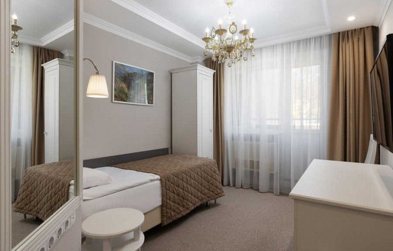 Санаторий занимает обширную благоустроенную территорию с фонтанами, прудами и парком площадью более 3,5 гектаров. Комплекс включает в себя два пятиэтажных жилых корпуса, в одном из которых расположена лечебное отделение и отдельно стоящее двухэтажное здание досугового центра со столовой. Жилой фонд может единовременно принять более 160 отдыхающих. Гостей ожидают номера Комфорт, Стандарт и Люкс, в основном предполагающие двухместное размещение. В каждом номере имеется санузел с душем и набором косметических принадлежностей, а также телевизор, электрочайник, холодильник, фен и необходимая мебель.