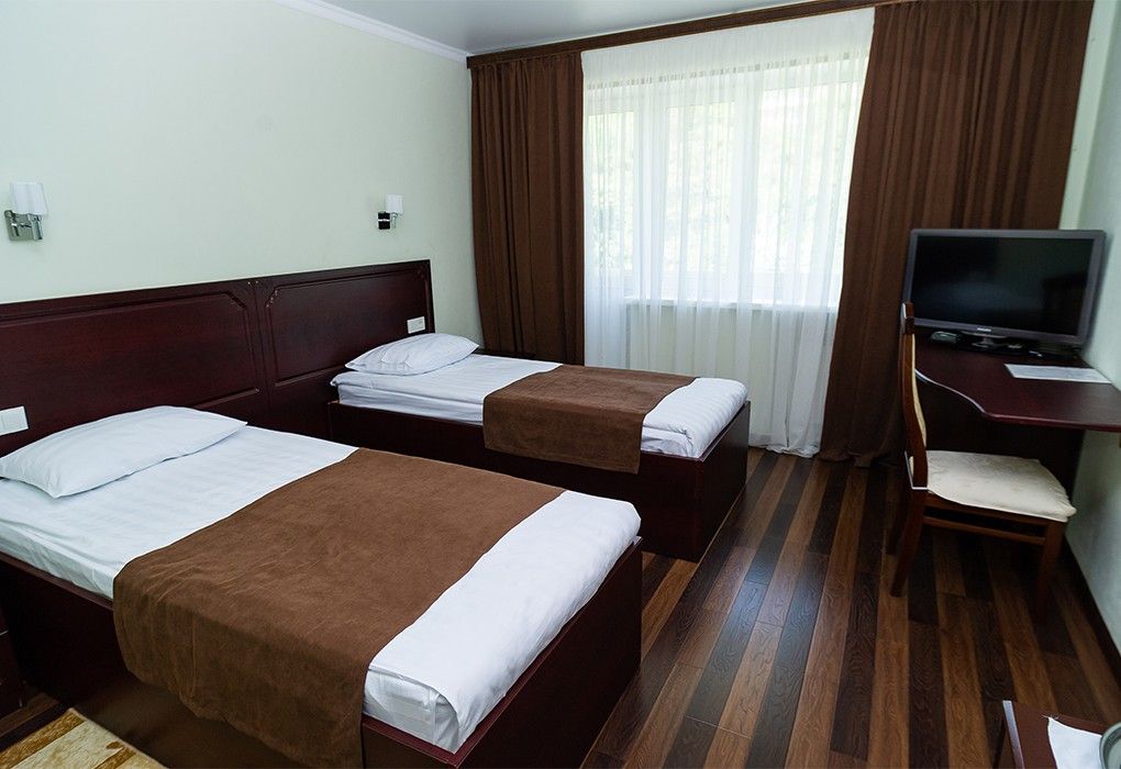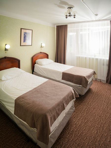 Однокомнатный номер с видом на горы для комфортного размещения 2 человек. В номере две раздельные кровати. Уверенный прием WI-FI в общественных местах (холл).