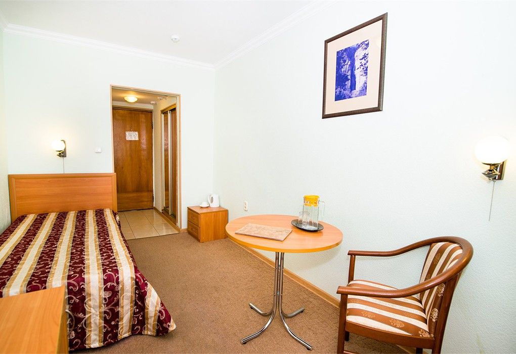 Однокомнатный номер для комфортного размещения 1-2 человек. В номере расположена одна двуспальная кровать. Уверенный прием WI-FI в общественных местах (холл).