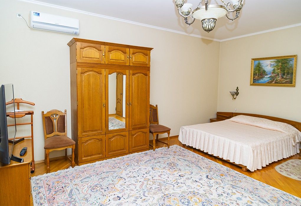 Большой двухместный номер с двуспальной кроватью и мягкой мебелью.