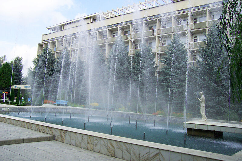 Парковая зона, дорожки для прогулок, фонтаны, открытые танцевальная площадки – это и многое другое ждет вас в санатории «Голубые ели» в Нальчике.