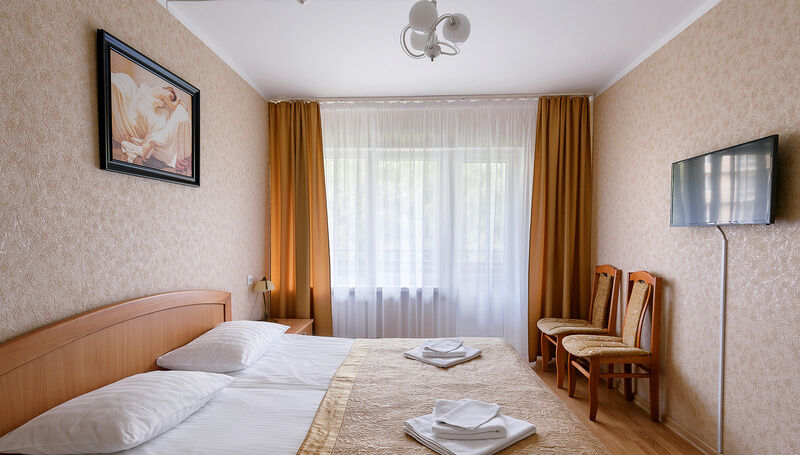Санаторий предлагает 405 комфортабельных номеров разных категорий, расположенных в трех жилых корпусах и главном лечебном здании. Первый и второй корпуса соединены с главным зданием крытым переходом на уровне второго этажа, в то время как третий корпус находится на расстоянии 280 метров от основной территории. Для гостей работают две столовые: одна в главном корпусе для жителей первых двух зданий и вторая на первом этаже третьего корпуса.