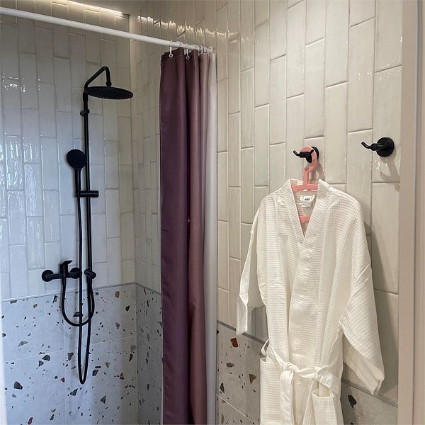В ванной комнате душ и тропический душ, банные принадлежности, халаты и тапочки.