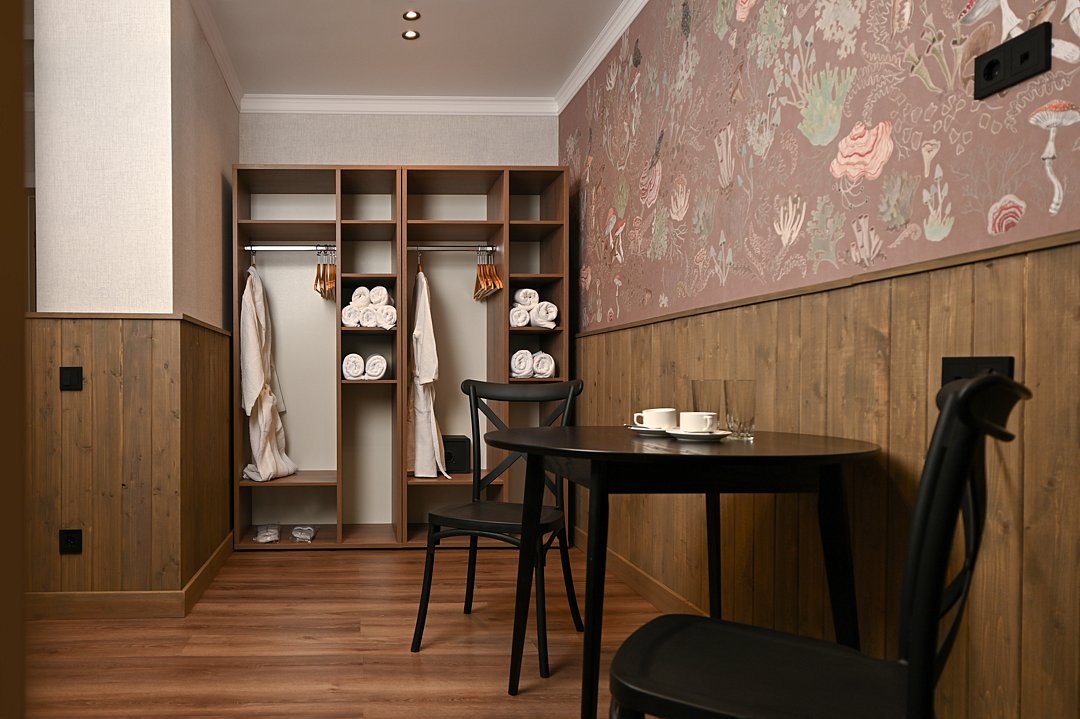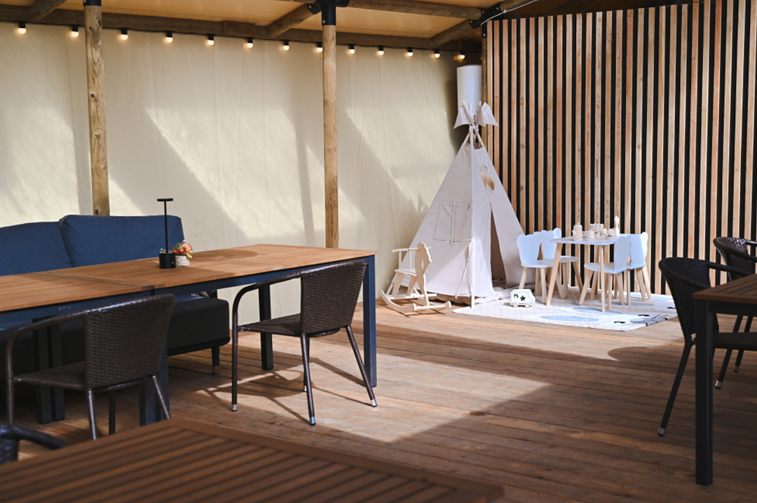 Идеальное пространство, чтобы гости могли отведать горячие блюда в уютной атмосфере на территории санатория.