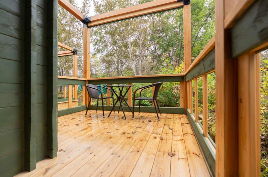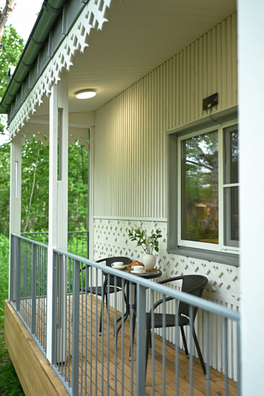Летний домик двухместный с террасой — уютное убежище от городской суеты, идеальное место для отдыха.
