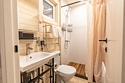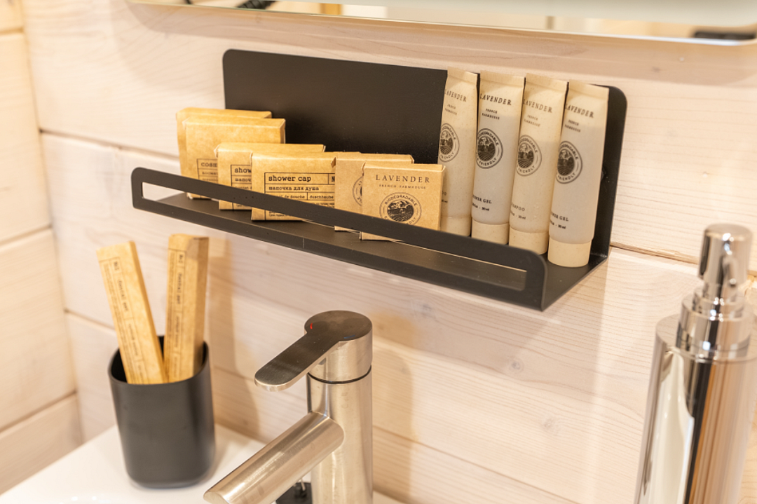 Домик выполнен из экологически чистого материала — дерева, которое дарит ощущение близости к природе. Внутри ждет теплая атмосфера, созданная благодаря натуральному дереву и минималистичному интерьеру. Просторная терраса приглашает насладиться утренним кофе на свежем воздухе или провести вечерние посиделки с друзьями.