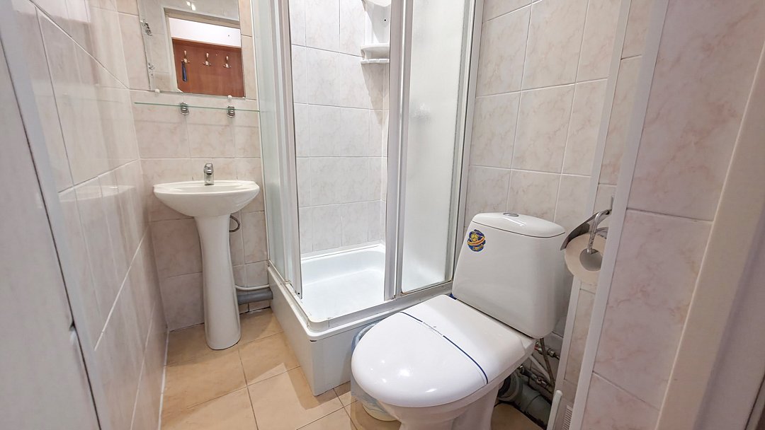 Санузел с душем на этаже,раковина,ТВ,Х.