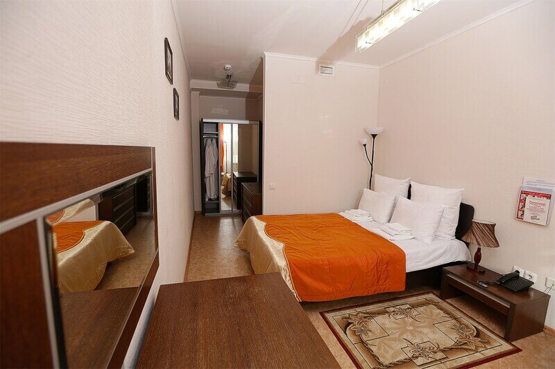 Для размещения предлагаются номера оборудованные необходимой мебелью и техникой. В каждом номере персональный санузел, ТВ и холодильник.