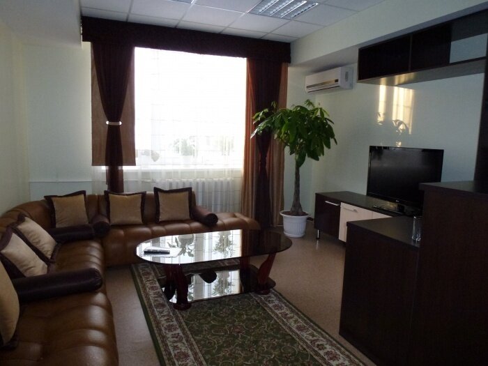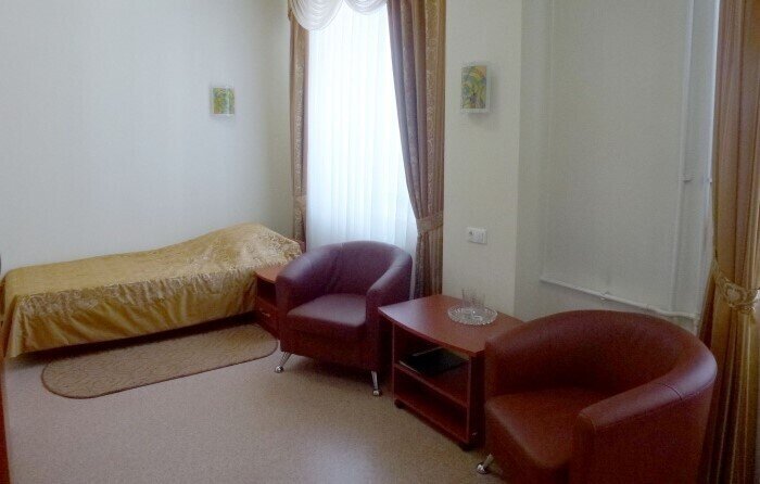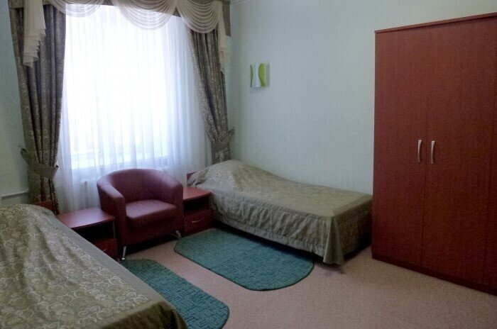 Санаторий занимает 3-этажное здание, в котором помимо номеров находится медицинское отделение и кабинеты специалистов. В номерах есть все необходимое: удобная мебель, рабочая зона, телевизор, собственная ванная комната с душем и феном. В номерах повышенной комфортности предоставляются тапочки и халаты. В столовой санатория гостям предлагается 4-разовое питание с использованием свежих продуктов и разнообразных и здоровых блюд.