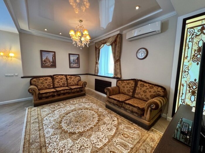 Двуспальная кровать, диван, телевизор, холодильник, с/у с душевой.