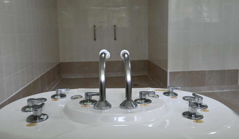 На территории санатория, отдельно стоящим зданием возвышается банный комплекс.