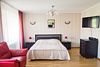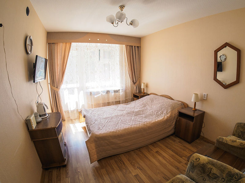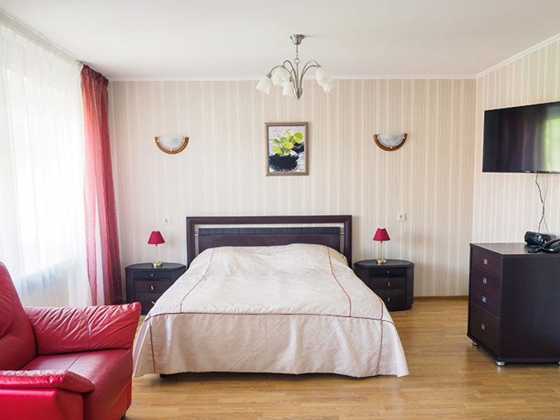 Жилая площадь - 12 м², лоджия. Мебель – 2 односпальные кровати или 1 двуспальная кровать, 2 тумбочки, 2 настольные лампы, мягкая мебель (2 кресла), журнальный стол, зеркало, телевизор, электрочайник, чайная посуда, чайник, холодильник, шкаф для одежды в коридоре. Сантехническое оборудование – душ, умывальник, туалет.