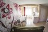 Жилая площадь - 24 м², 2 лоджии, прихожая. Мебель - 1 двуспальная кровать, мягкая мебель (диван, 2 кресла), 2 тумбочки, 2 настольные лампы, журнальный стол, зеркало, холодильник, электрочайник, телевизор, шкаф для одежды в комнате и коридоре, сейф. Сантехническое оборудование – душ, умывальник, туалет.