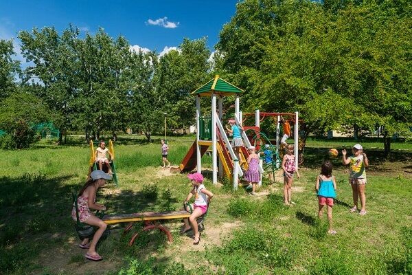 Среди зелени и цветов расположены площадки для занятий спортом и детских игр. Есть крытые залы, работает экскурсионное бюро.