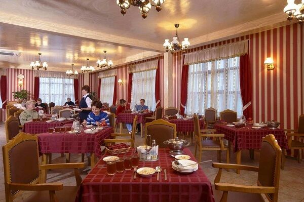 Питание гостям санатория осуществляется по принципу «меню-заказ» на семь дней и включает в себя рекомендованные врачами диеты. Столовая санатория имеет три вместительных обеденных зала.