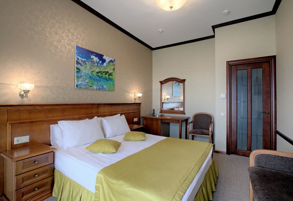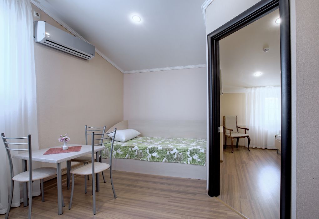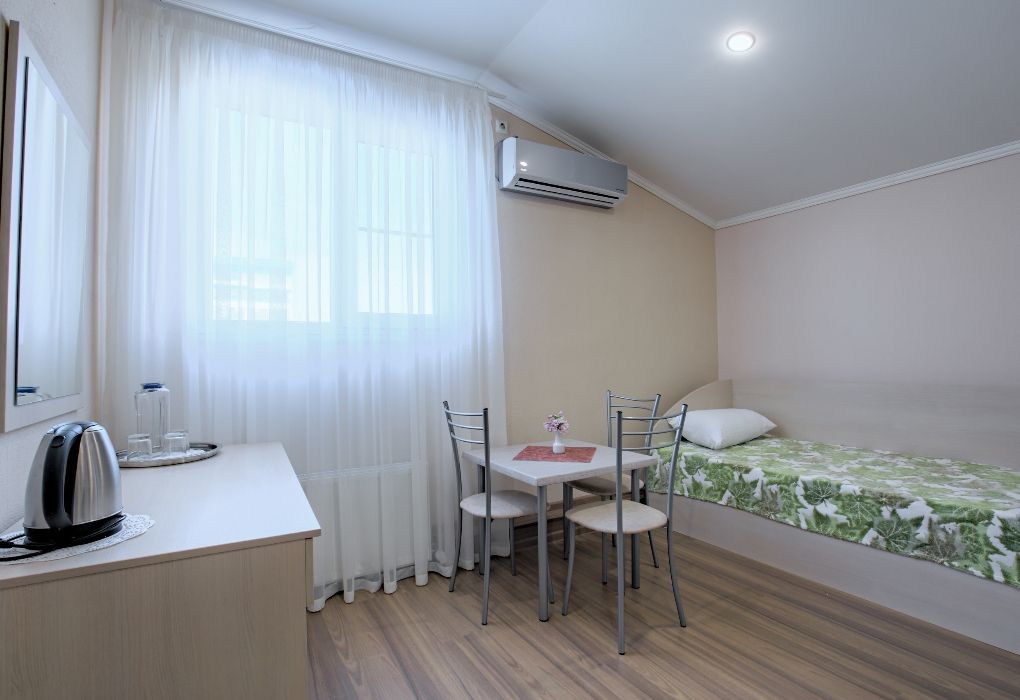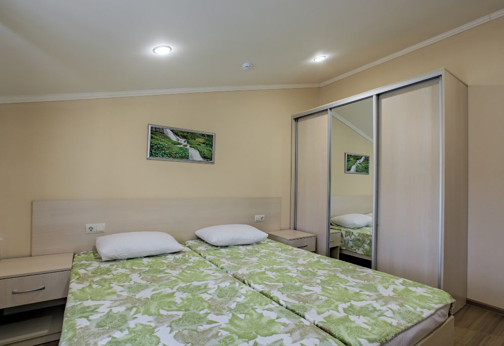 Номер состоит из спальни и собственной ванной комнаты, оснащён удобной функциональной мебелью и идеально подходит для комфортного отдыха 1-2 человек.