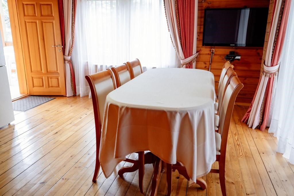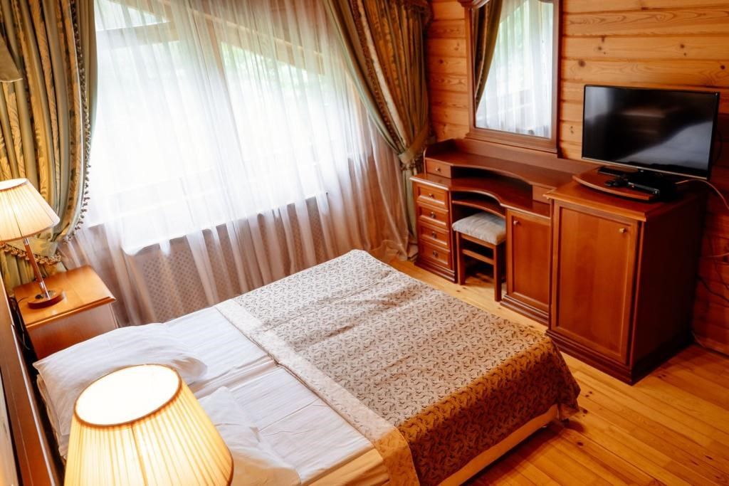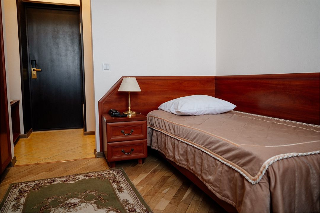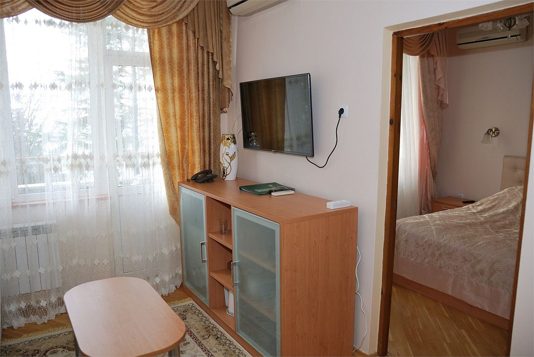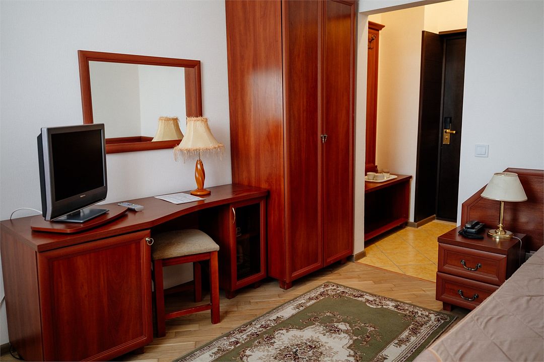 Санаторий может одновременно принимать более 400 гостей. Полноценное санаторно-курортное лечение подразумевает довольно длительное пребывание в здравнице, и номера оборудованы с учетом этого: в них есть все необходимое, от телевизоров до чайников и посуды.