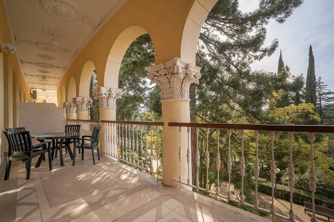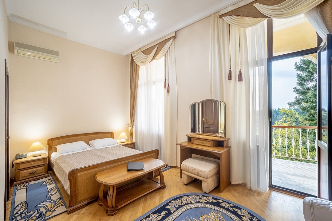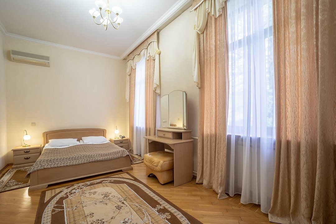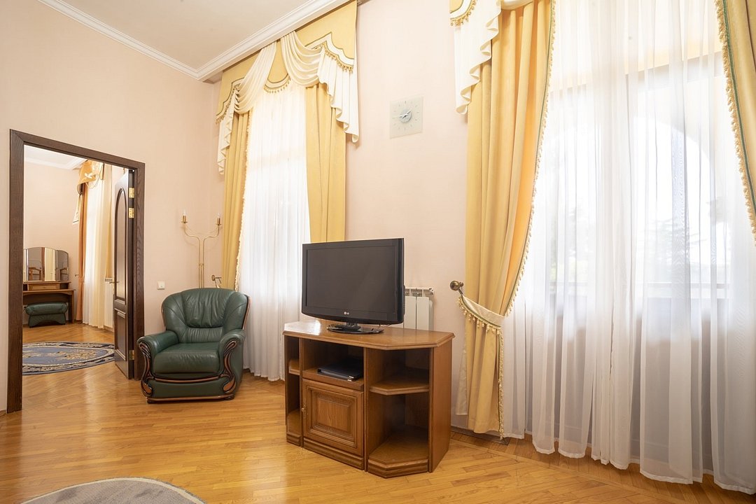 Лечение и оздоровлениеДостоинстваИз-за карантина отменили некоторые процедуры, но весь персонал был очень дружелюбным. Питание происходило по системе заказного меню, оно было разнообразным, вся еда была вкусной. Наш номер находился в главном корпусе, номера были чистыми, был красивый вид с балкона. Здание старое, оно красивое. Внутри расположены ступени из мрамора и дорожки, при санатории есть большой пляж, лежаки. Посетим санаторий в следующем году.
