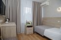 Это просторный однокомнатный двухместный номер, площадью 15 кв.м. с максимальным комфортом по доступной стоимости. В помещении выполнен свежий стильный ремонт и установлена качественная мебель. Большие окна, обилие мягкого рассеянного света и отсутствие вычурных декоративных элементов задают ощущение воздушности и простора. Номер оснащен двумя односпальными кроватями, сплит-системой, телевизором, холодильником, шкафом для одежды, чайным набором, сейфом, электрическим чайником, санузлом с душем.