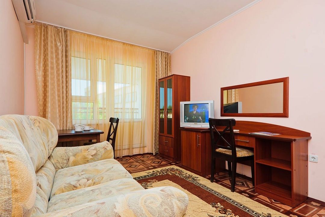 телевизор, телефон, фен, душевая кабина, биде, халаты, банные полотенца, тапочки, диван, тумбы, шкаф для одежды, журнальный столик, набор посуды, сейф, чайник, унитаз, раковина, питьевая вода, кресло, туалетные средства, сплит-система, мини-холодильник, без питомцевВ гостиничном номере