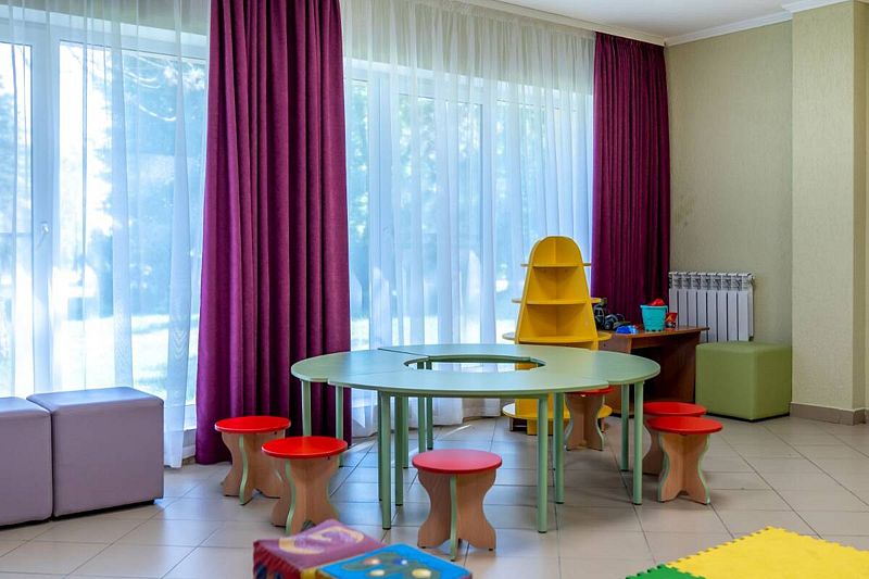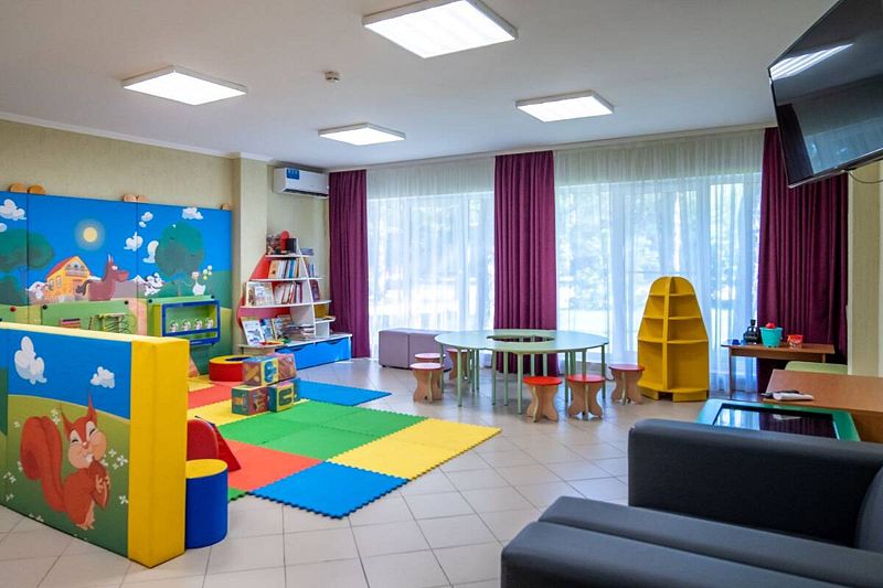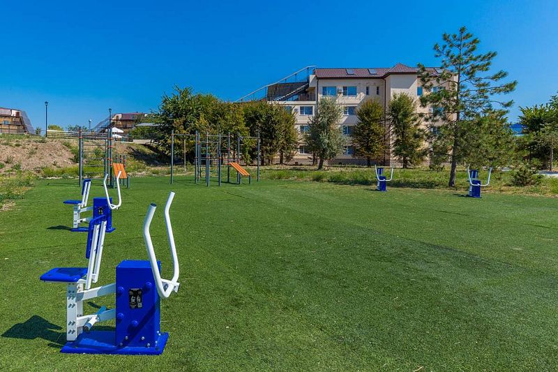 На территории санатория находятся уютный бар и столовая, где можно заказать комплексное питание. Среди удобств — открытый бассейн, работающий в течение сезона, бильярд, караоке, настольный теннис, спортзал, теннисный корт, футбольное поле, волейбольная площадка, а по вечерам показывают интересные фильмы. Для автомобилистов предусмотрена охраняемая парковка. Для маленьких гостей оборудована детская площадка с качелями и горками, а также игровая комната с воспитателями, которые присматривают за детьми. Дети точно не заскучают — в санатории регулярно проводят анимационные мероприятия и детские дискотеки.