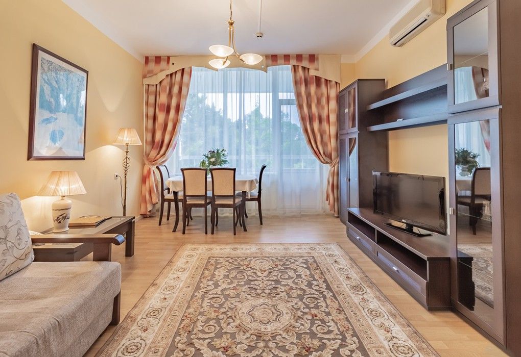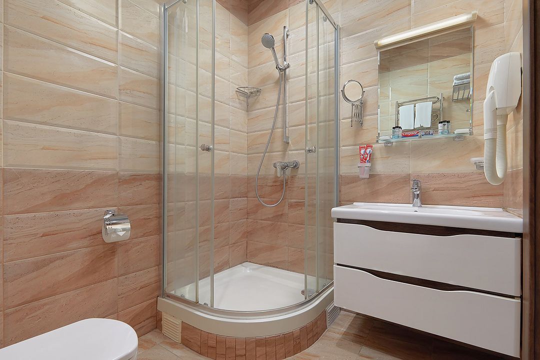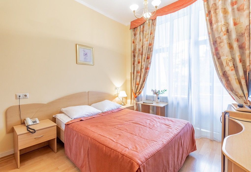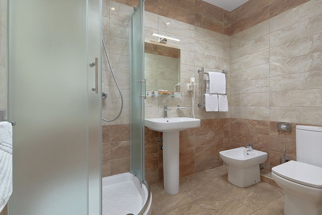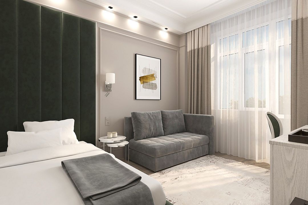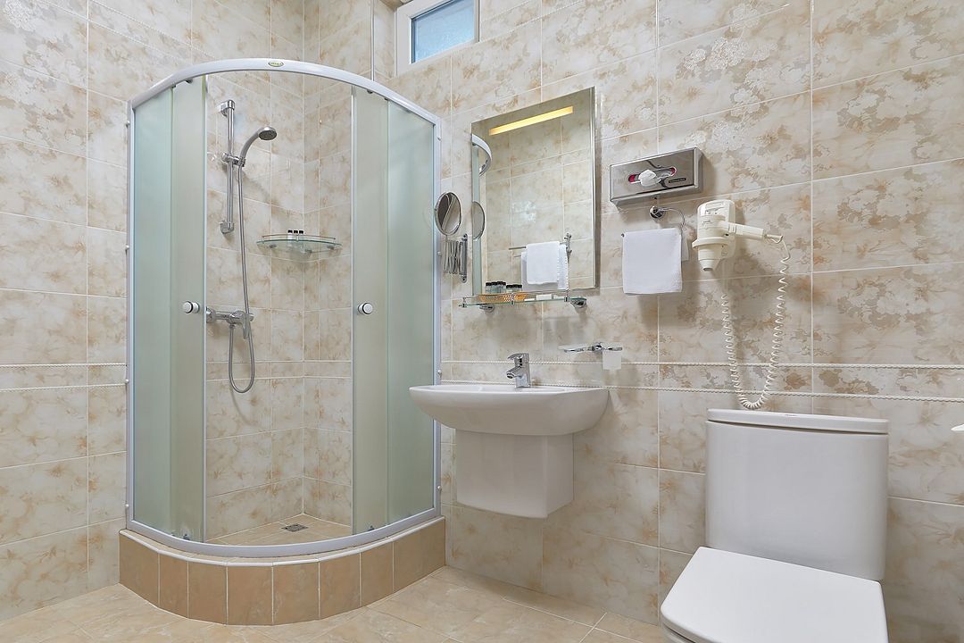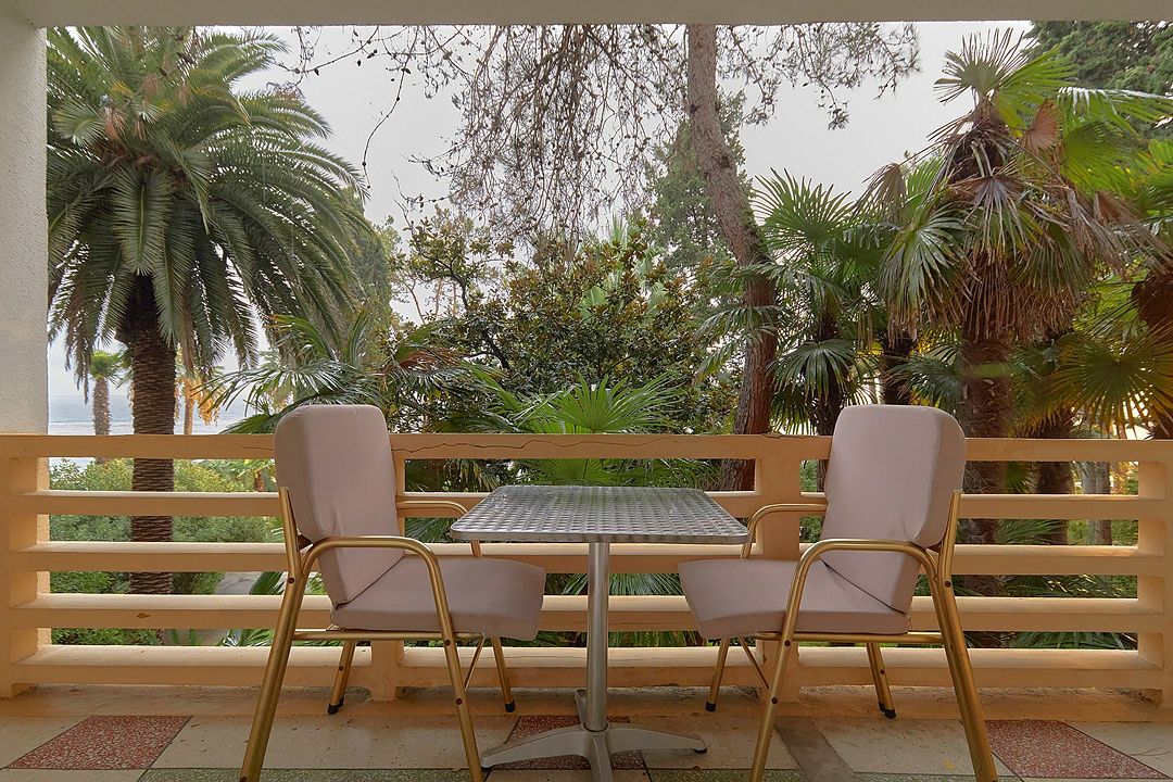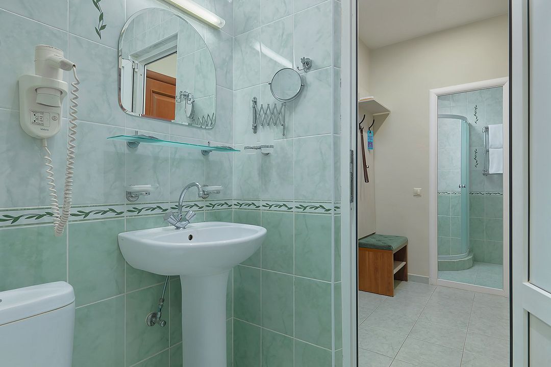 Однокомнатные номера стандарт в теплых светлых тонах площадью 14м2 со всеми удобствами и просторной лоджией с 2 по 4 этаж. С видом на парк. Две раздельные кровати. Максимальное размещение 2+1(доп.место-кресло-кровать). В ванной есть туалетные принадлежности: мыло, шампунь, которые меняются каждый день. 4 комплекта полотенец, в том числе для пляжа. Предусмотрен сейф, стол, шкаф, телевизор, кондиционер, холодильник. Дополнительно: чайник, минимальный набор посуды, фраже. Уборка проводится каждый день.Услуги и удобства