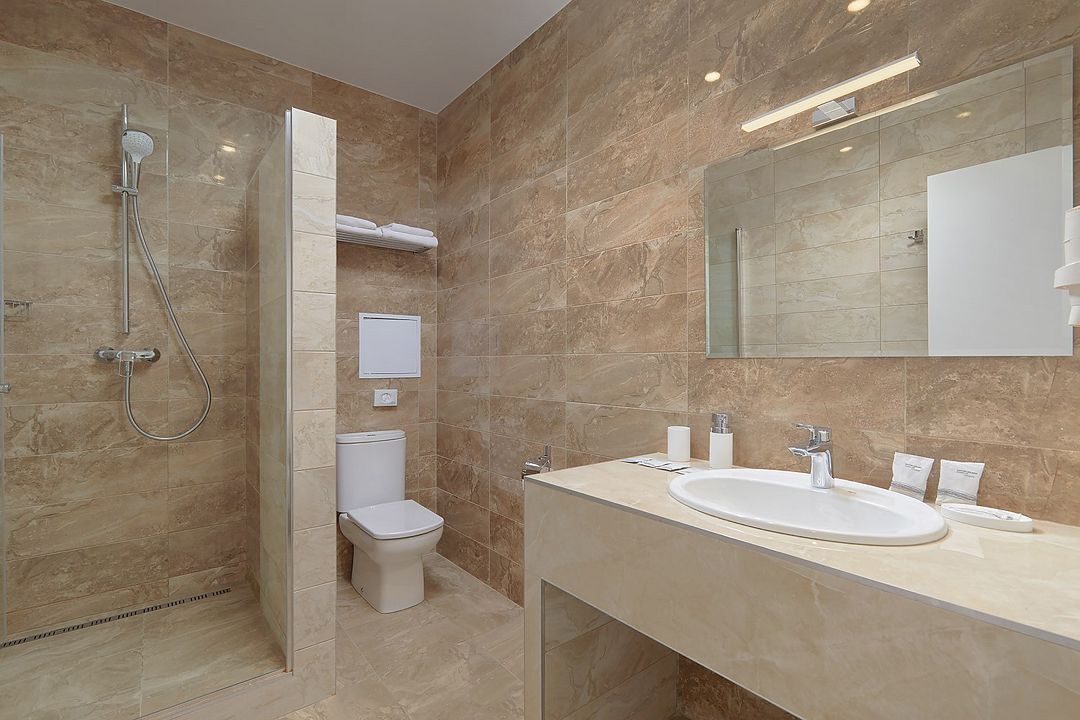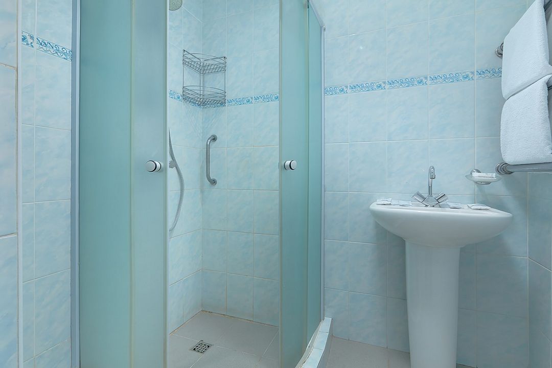 телевизор, кондиционер, фен, душевая кабина, две односпальные кровати, стулья, шкаф для одежды, вешалки, унитаз, раковина, вид на море, раскладной диван, внутренний телефон, мини-холодильникВ гостиничном номере