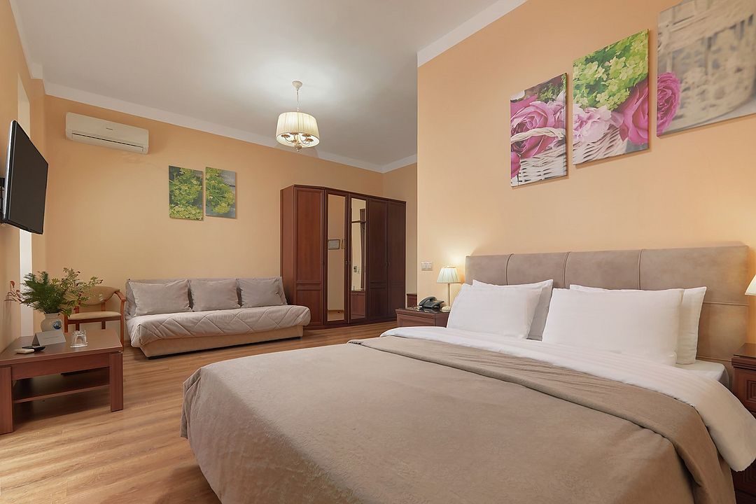 Комфортный номер с видом на парк, площадью 23 м2. Одна двуспальная кровать и раскладывающийся диван. В ванной есть туалетные принадлежности: мыло, шампунь, которые меняются каждый день. 4 комплекта полотенец, в том числе для пляжа. Предусмотрен сейф, стол, шкаф, телевизор, кондиционер, холодильник. Дополнительно: чайник, минимальный набор посуды, фраже. Уборка проводится каждый день.Услуги и удобства